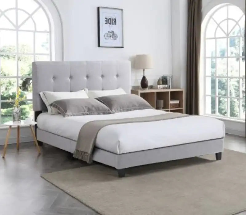 The Cabo upholstered platform bed is wrapped in premium fabric and features tufted accents for added flair. Crafted in a low profile with clean lines, this platform bed brings a fresh, modern feel to any bedroom. Designed for versatility, the tufted bed frame has an adjustable height headboard, so you can tailor it to best fit your mattress. And the platform bed design means you don’t have to use a boxspring to support a mattress!
