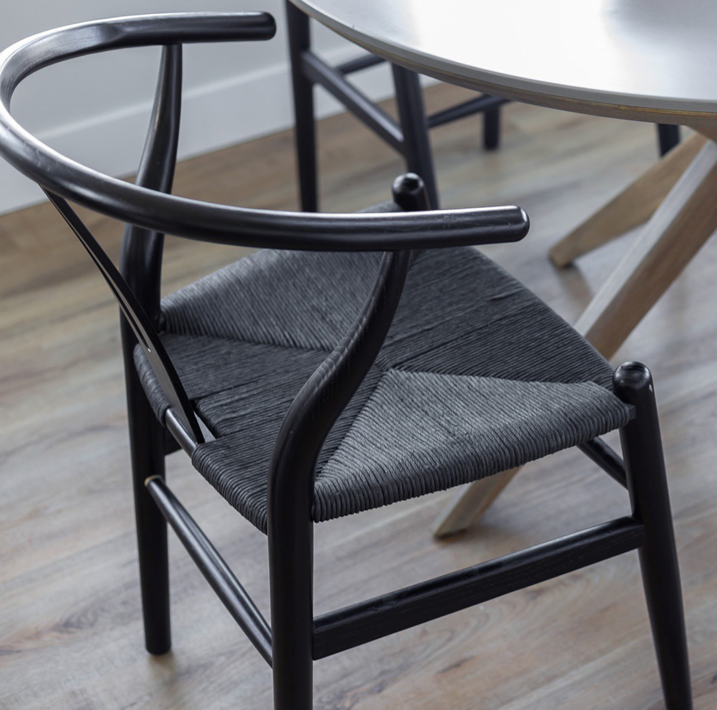 Inspired by the Hans J Wegner Wishbone Chair released in 1950, this woven chair in matte black is a new take on classic mid-mod design.